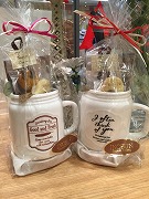 マグカップの中に、お菓子や紅茶など組み合わせれば