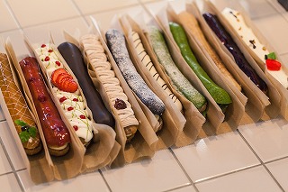 見た目にも可愛く美味しいエクレアはお味もプレーン・抹茶・モンブラン・キャラメル・ラズベリー・ラムレーズン