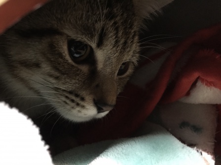 私のお布団の中で寝てます…