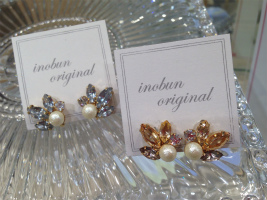 ピアスとリングがお揃いになったイノブンオリジナルアクセサリー。