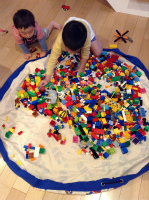 円形の大きな布の中に、おもちゃをばら撒きます♪
