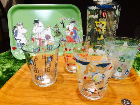 リトルミイやムーミン、ムーミン谷を描いたグラスは各800円+税です。