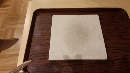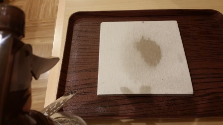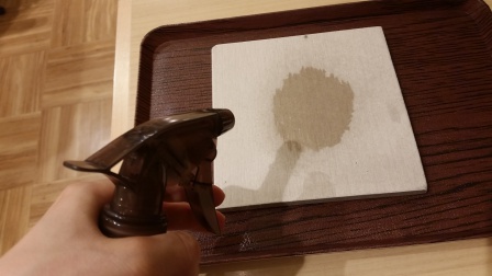 同じ素材のサンプルに霧吹きで水をかけてみると、、、