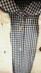 只でさえ人気のギンガムチェックにリバティのくるみボタンがついて、可愛さが止まらないシャツ。¥8900(税別)