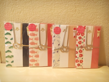 松、鯛、鶴、椿の4種類。どれも和風でほっこりしたご祝儀袋です。