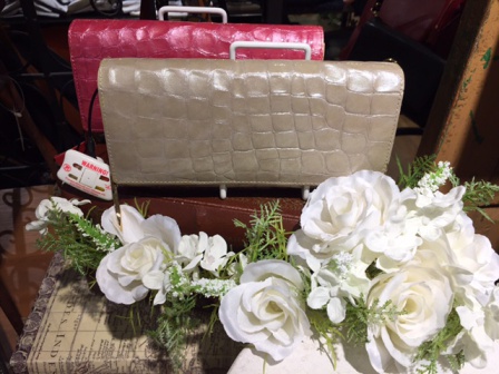 ゴールドの口金を差し込んで使うとてもおしゃれなお財布。 クラッチバッグの様に持てるのでパーティシーンにもおすすめです。