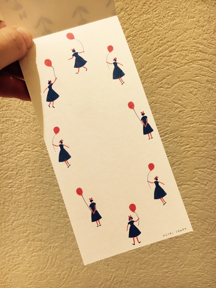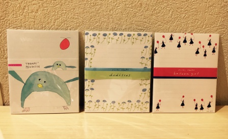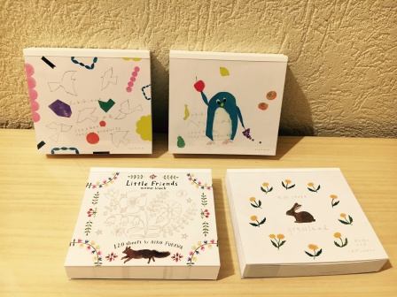 先ほどの同じモチーフを含む4柄が各5枚づつはいった一筆箋。