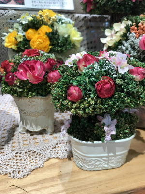 ローズアレンジは自然素材と造花の、ユニークで美しいアレンジです。