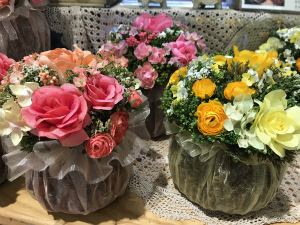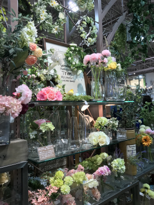 こちらも同じくいろんなアレンジがそろいました。きれいなガラスにも入っていたり、