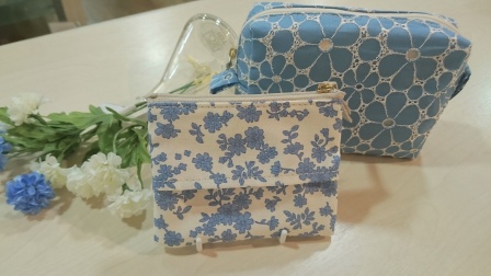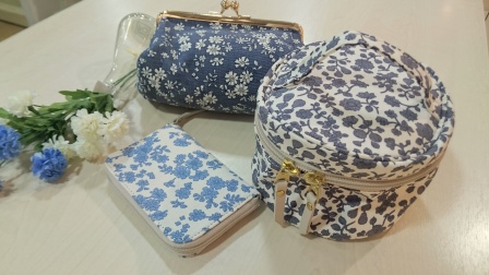 今日は、バッグの中からのぞくと涼やかな青い小花柄ポーチのご紹介です