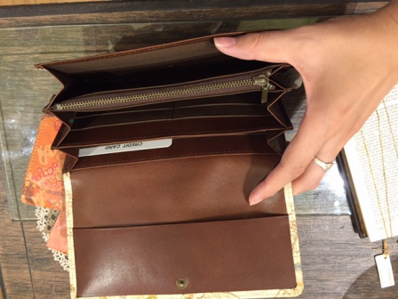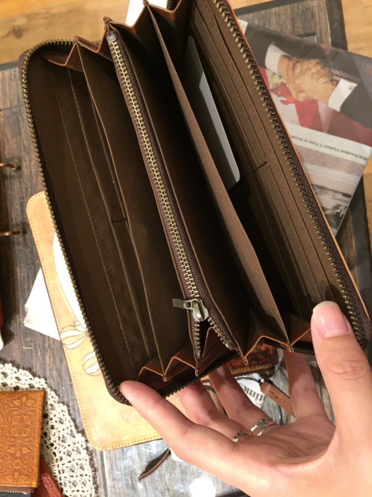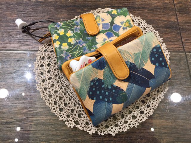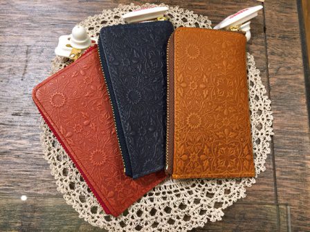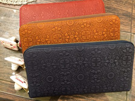 ナチュラルな風合いで、型押しデザインが魅力的なお財布。
