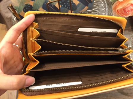 内側がジャバラになので大きく開き、便利なポケットがたくさんあります。