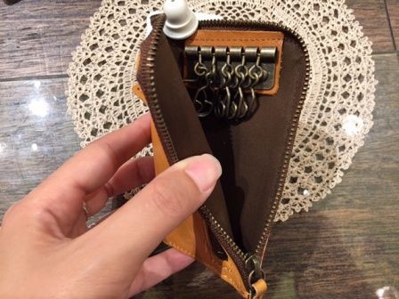 L字型ファスナー仕様でフックが5つとカードポケットがあり、