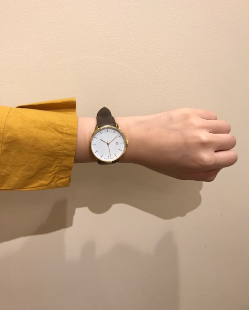 ベージュの方は黒いベルトに比べ柔らかい印象になるのでカジュアルな服装にこのフォーマル北欧ウォッチをさりげなく合わせてみても◎