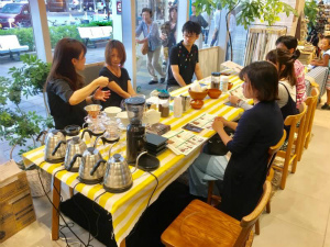 参加者のかた同士でお話をしながらみなさまハンドドリップを楽しんでいらっしゃいました。