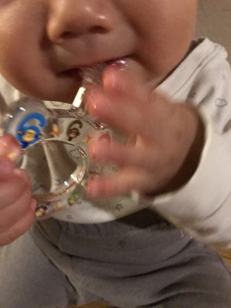 自分で持ってガシガシ かじっています。 小さな手でも握りやすいリング型 なので安心して使えます。 1〜12の数字のポーズをした 動物たちがカラフルでかわいいです☆ お次は、大人気のおそろいシリーズです。