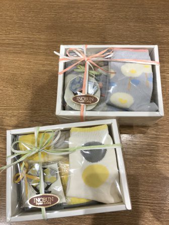 ベビー、キッズ用に スタイ、くつ下 ママ用に ハンカチ、くつ下、ピアス ヘアゴムがあります。 商品には、素敵な言葉がたくさん 詰まったミニ絵本も付いていますよ。