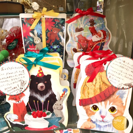 動物たちがパーティーをしている様子や、ニット帽を被った