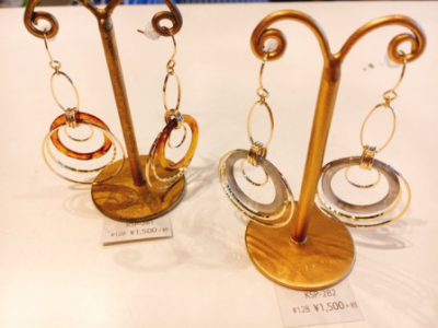 4つのわっかのうち一つがべっこうなどの柄が入っており普段使いしやすいピアスになっております!