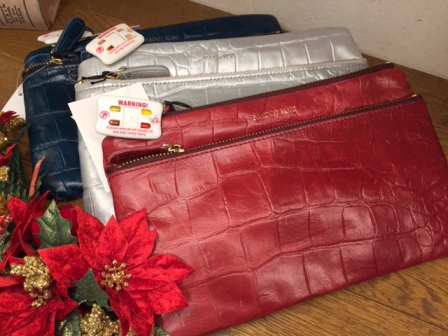 細かいクロコの型押し施されていて、ツヤのある革の質感がとても上品な仕上がりになっています。