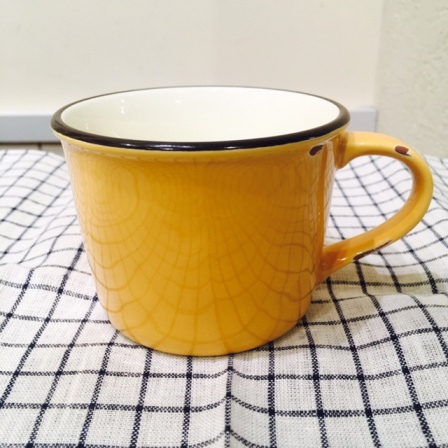 黄色のマグカップは、持っているだけで気分も明るくなりそうです!
