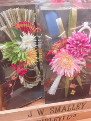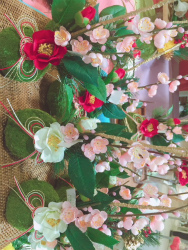 すでに贈り物に大人気になっているこの正月飾りは赤椿と白椿の二種類をご用意しております!