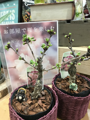 店内で販売している桜の木ももうそろそろ咲きそうですよ♪