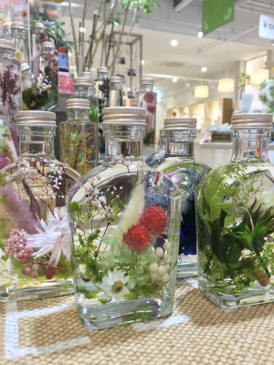 まずはドライフラワーを専用のオイルできれいに閉じ込めた植物標本のインテリア、