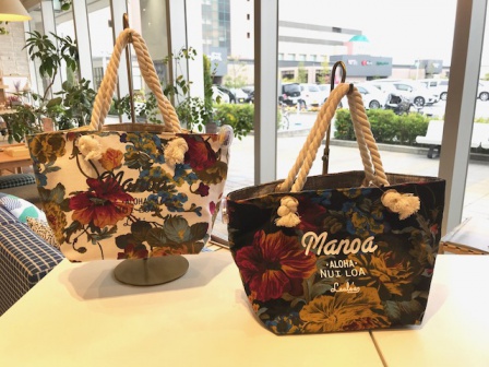 大きな花柄と持ち手のロープが目を引く、とっても雰囲気のあるトート!