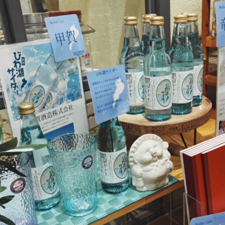 甲賀より、滋賀酒造株式会社さんから、近畿の水瓶として生活を支えてきたびわ湖に感謝して生まれた『びわ湖サイダー』。こちらは売上の一部を琵琶湖環境保全に寄付させていただいております。