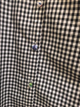 リバティの生地をくるみボタンに使用したブラウスも、人気です。
