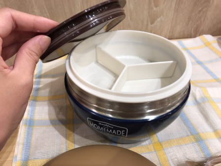 中に仕切りがあり キャリーランチ以外にも スープジャーをいれたいときには 仕切りの部分に入れて固定することが できます。
