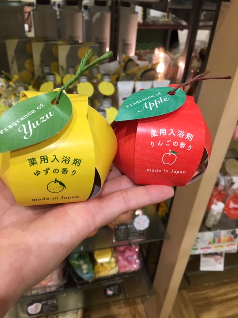 今バスコーナーではゆずと林檎の入浴剤を展開しております! 私のオススメはこちら、