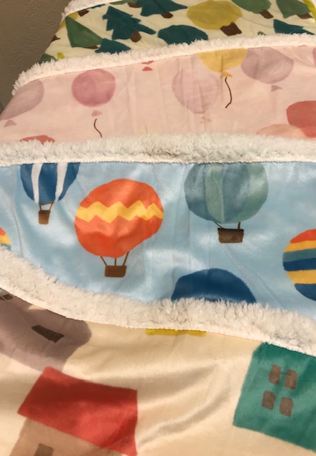 奥から森柄、バルーン柄、気球柄 お家柄の4色です。 パステルカラーとかわいらしいデザインで キッズにおすすめです。