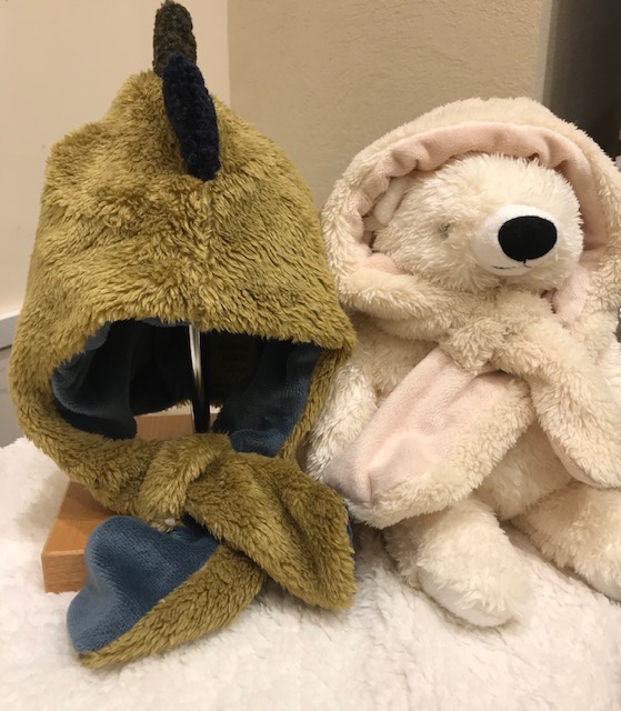 裏地はもこもこのボアで 雲に包まれているような気分に。 お次は、アニマルモコシリーズ! 〻キッズキャップマフラー🧣〻