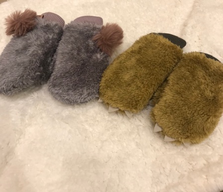 男の子用にはアニマルの爪が 女の子用にはポンポンがついています。 手首はリブ付きで暖かさをキープ してくれます。 今から使ってほしい防寒シリーズ ご自宅用にプレゼントに人気です。 ご来店の際は ぜひ、お手に取ってみてくださいね。
