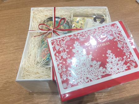 絵のタッチが優しいポストカードタイプのカードです。キュートなサンタさんをプレゼントと添えると可愛さがアップします。(150+tax)