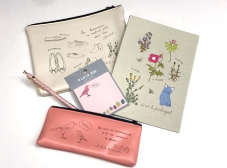 ポーチやペンケース、ノートなど、やわらかなタッチのイラストが可愛いステーショナリーセットです。