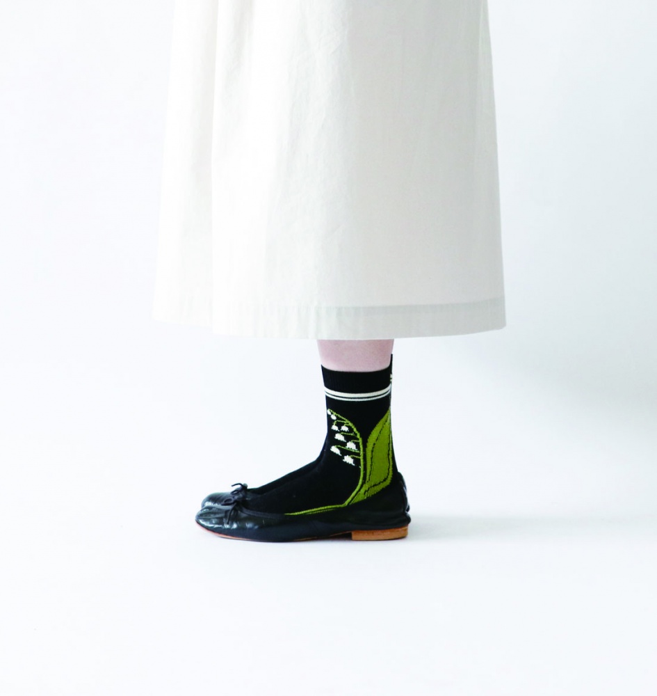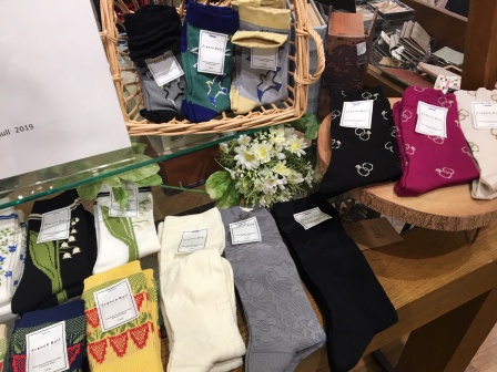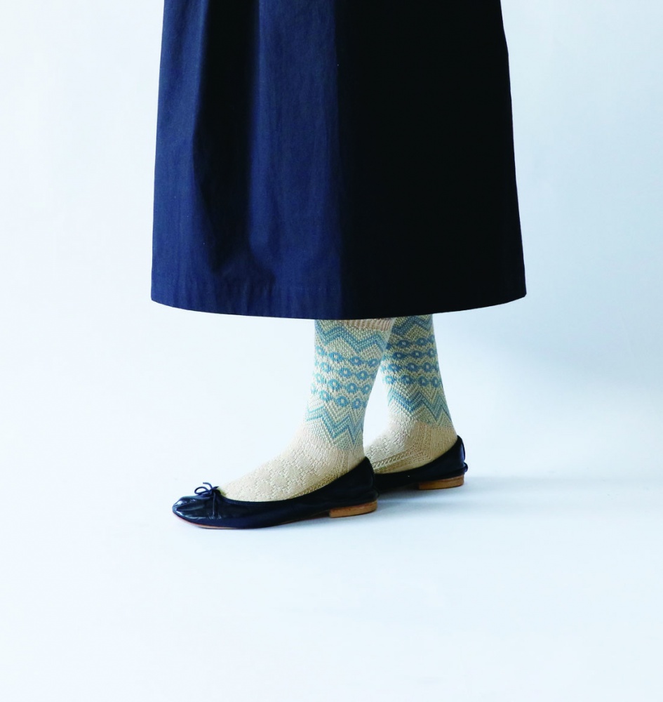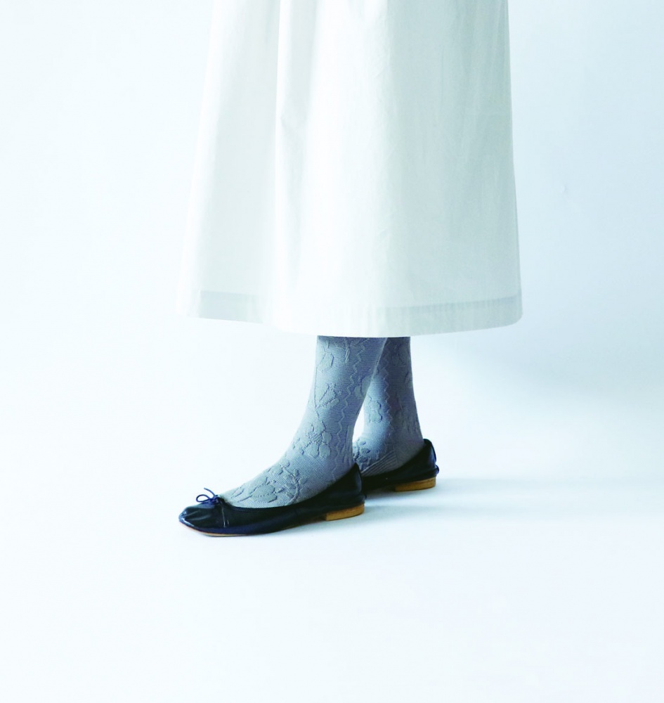 こちらは、編み柄を凹凸で表現したお花柄のハイソックスです。