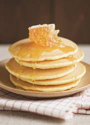ナイフやスプーンでサクサク崩していくと、中から濃厚な黄金色の蜂蜜がトローリ。 蜜蝋(=ミツバチが蜂蜜を蓄えるために作った入れ物。 スキンケアやキャンドルにも使われる)もそのまま食べられ、 シャリシャリとした食感は病みつきになるそうです。 蜂蜜はお砂糖よりもカロリーが低い上、 少量でも甘さが感じられるので、 ダイエットの強い見方です。 他にも脳を活性化させるブドウ糖や、 良質のたんぱく質、ミネラルが豊富に 含まれています。 コームハニーのおすすめの食べ方は、 パンにのせて、トーストし、 お好みで少しバターをぬって ホットケーキの上にのせて