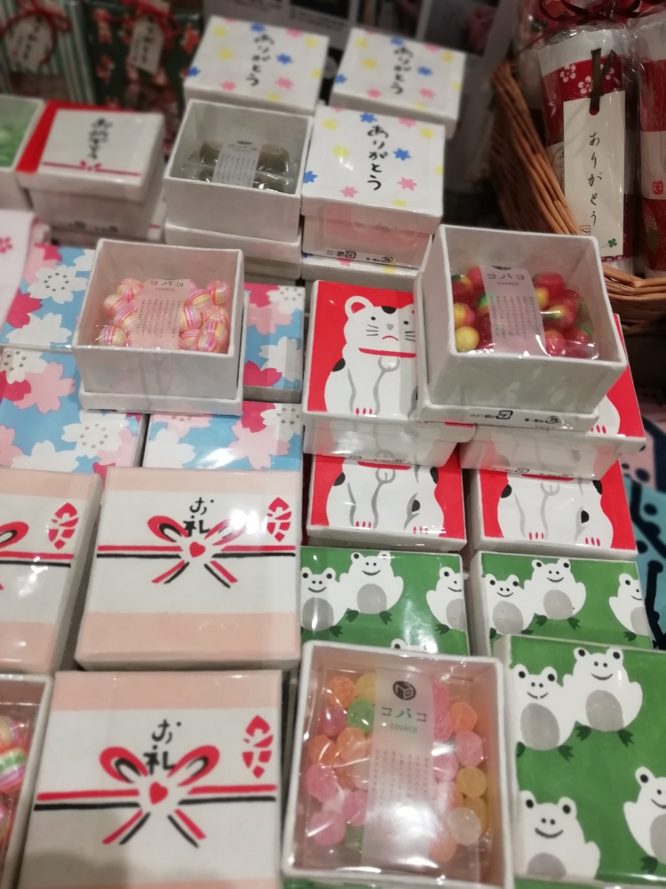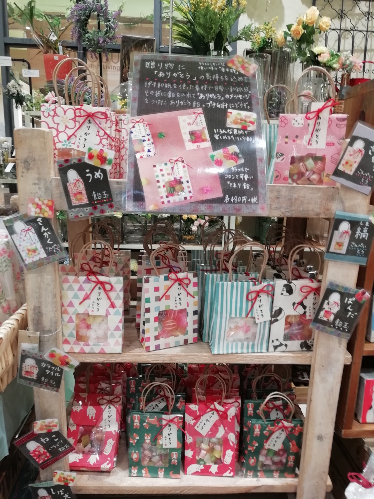 可愛い袋にカラフルな飴、コンペイトウなどが入ってます。