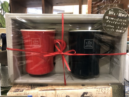 緋色と錆納戸のペアマグカップです!