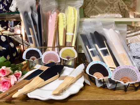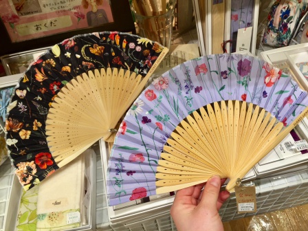 今回ご紹介する扇子は、ハンカチとポーチの売り場の隣に置いてます(^o^)
