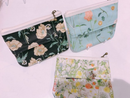 次は同じくリバティ柄のファスナーポケットつきのティッシュポーチ。口紅や小さい鏡を入れるのにもぴったりです。重宝します。¥1400+税
