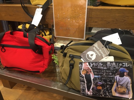 また店内でトラベルにオススメの、防水で、丈夫で、軽いBAGを