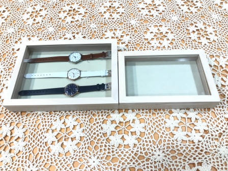 写真のように時計をコレクションするもよし、ネックレスを収納するのもよし!大きさが違うので、重ねてスペースを空けて収納することができます。