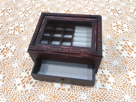上品な佇まいと機能性を兼ね備えたアクセサリーケースです リング収納が可能でとても便利です 2段タイプの仕切りは取り外しもできるので、用途も広がります。女性への贈り物に特におススメです♪