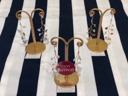 シンプルなコーデが多くなってしまう今の時期、耳元でゆれるカラフルな天然石は相性バツグン☆
