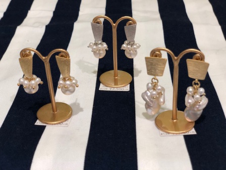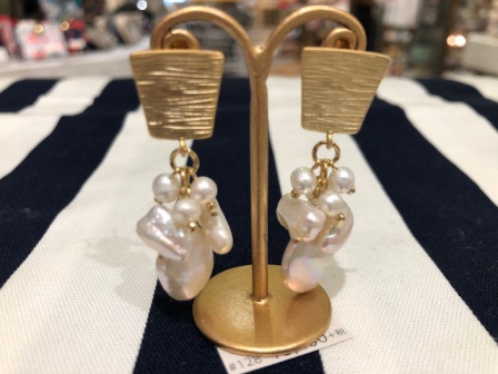 天然石の代表格、淡水パールをあしらった商品です。流行のメタル素材との組み合わせで、バロックパールがアクセントになっています♪