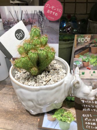 個人的にもお気に入りなのがこの動物柄の鉢のサボテンです。